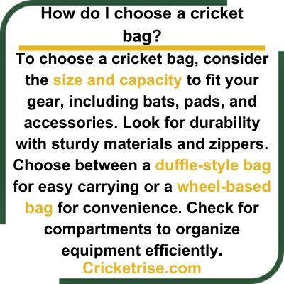 A good cricket kit bag keeps all your gear safe and easy to carry. Here’s what to look for:
