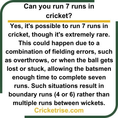 This rare occurrence can happen under exceptional circumstances. For instance, if the ball is hit to a very large area of the ground with no nearby fielders, and the ball doesn’t reach the boundary, batters could run more than the usual two or three runs. Additionally, factors such as fielders fumbling the ball or a slow outfield can contribute to the opportunity to run more than usual.