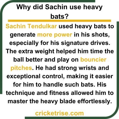 Tendulkar preferred heavy bats for the added power they provided, which suited his style of play.