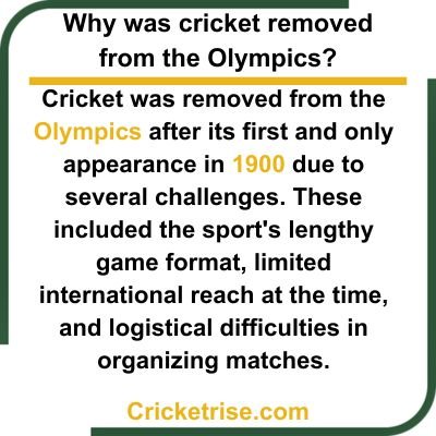Cricket has been absent from the Olympics since 1900 due to logistical challenges, including scheduling conflicts and the specific infrastructure required for the sport.